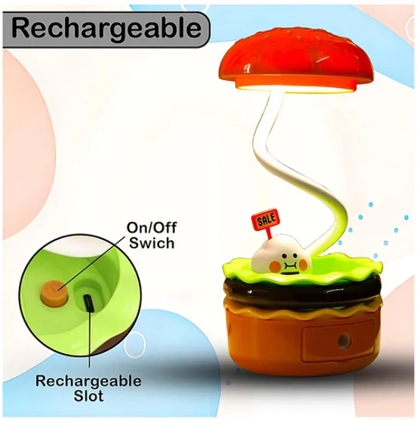 The3-in-1 Burger Design Study Lamp is a fun, functional, and versatile desk accessory designed to meet multiple needs while adding a touch of whimsy to anyspace. Shaped like a burger, this innovative lamp combines USB-rechargeable LED lighting, a pencil sharpener, and a storage compartment into one compact and stylish design, making it perfect for kids, students, and anyone looking to brighten their study or workspace. This multifunctional study lamp features a built-in battery that allows for cordless operation, making it portable and convenient for use anywhere. The 360-degree flexible hose enables users to adjust the light's direction and angle effortlessly, ensuring optimal illumination for reading, studying, drawing, or working on projects. The soft LED light provides a comfortable, flicker-free glow that reduces eye strain,creating an ideal environment for focused activities. The integrated pencil sharpener is conveniently located, making it easy for kids and students to keep their pencils sharp and ready for use without the need for an additional tool.The hidden storage compartment offers a practical space for storing stationery items such as pencils, erasers, or small accessories, helping to keep the work space organized and clutter-free. Made from durable, child-safe materials,the lamp is designed to withstand daily use while maintaining its vibrant and playful burger-inspired design. Its compact size makes it a great fit for desks, bedside tables, or study areas, while the rechargeable battery ensures eco-friendly and energy-efficient use. Whether as a functional desk lamp, a unique gift, or a fun addition to a study setup, the 3-in-1 Burger Design Study Lamp is a delightful and practical choice. Perfect for birthdays,back-to-school season, or as a thoughtful present, this lamp provides a combination of style, utility, and fun, making it an excellent addition to any work space or bedroom.