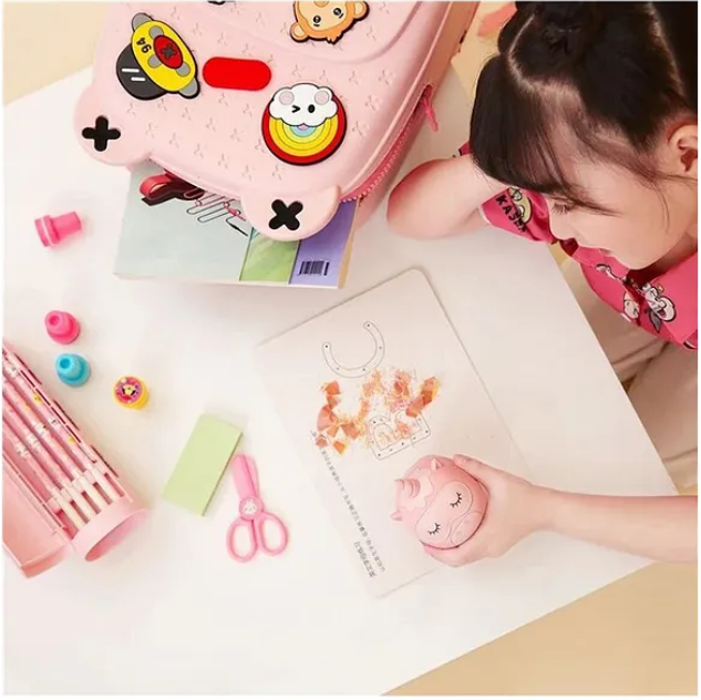 This backpack features an adorable Kawaii Pinky Pink design, characterized by cute and whimsical elements such as hearts, stars, or animals