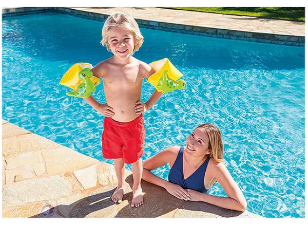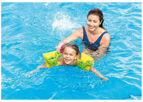 Intex presents this set of 2 swimming arm bands that make water play a little more fun and safe. They're an ideal choice for use at the pool, beach or lake, and they're a simple way to give children confidence in the water. Safe material & comfortable to wear for ultra-buoyant flotation. The water-repellent material provides superb buoyancy that's suitable for swimmers and non-swimmers.