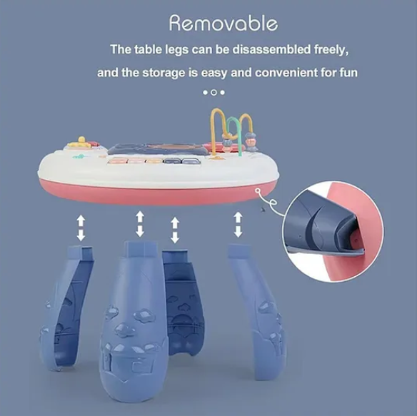 Multi-Activity Table: Includes a range of musical activities, such as pressing buttons to hear different tunes and sound effects, promoting fine motor skills and cause-and-effect understanding.