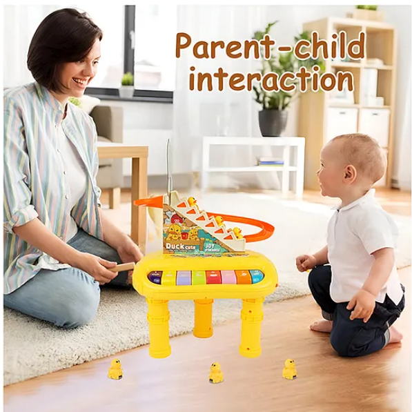 This innovative toy combines two exciting activities in one a musical piano and a duck track slide with climbing stairs. Kids can enjoy playing with the ducks while engaging with the piano lights and music