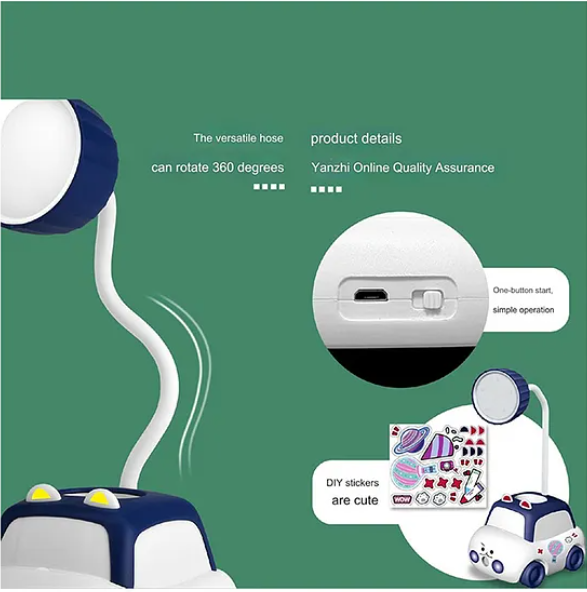 Study Lamp For Kids Cartoon Animal Car Rechargeable Desk Table Lamp 3 In 1 Study Desk LED Lamp With Sharpener And Pen Holder Electric Table Lamp Adjustable Study Desk Lamp For Study Room Home Office - (Pack of 1 - Design And Color May Vary)