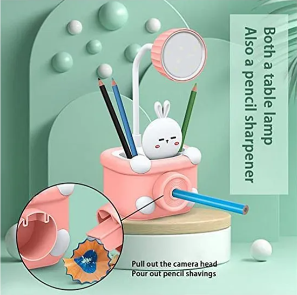 Study Lamp For Kids Cute Animal Design Rechargeable Desk Table Lamp 3 In 1 Study Desk LED Lamp With Pencil Sharpener And Pen Holder - (Pack of 1 - Design And Color May Vary)