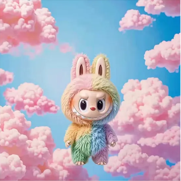 Experience the thrill of mystery and collectible art with the Rainbow Color Labubu Vinyl Face Plush