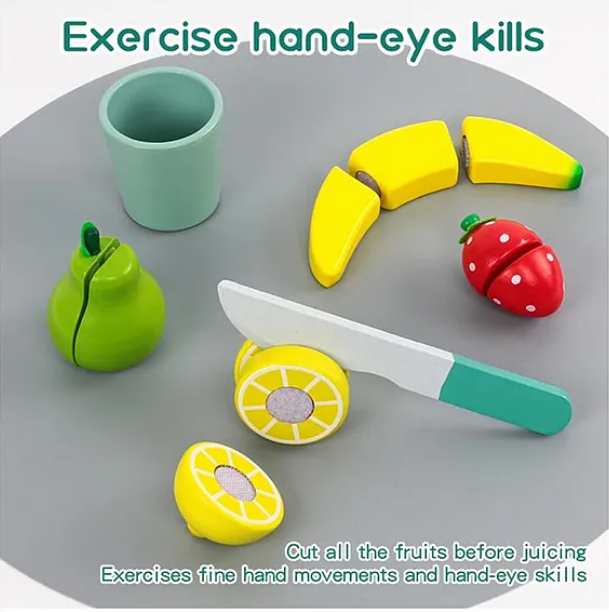 EDUCATIONAL AND DEVELOPMENTAL BENEFITS:Teach kids about healthy eating, food preparation, and the importance of fruits in their diet. This toy enhances fine motor skills, hand-eye coordination, and problem-solving abilities.